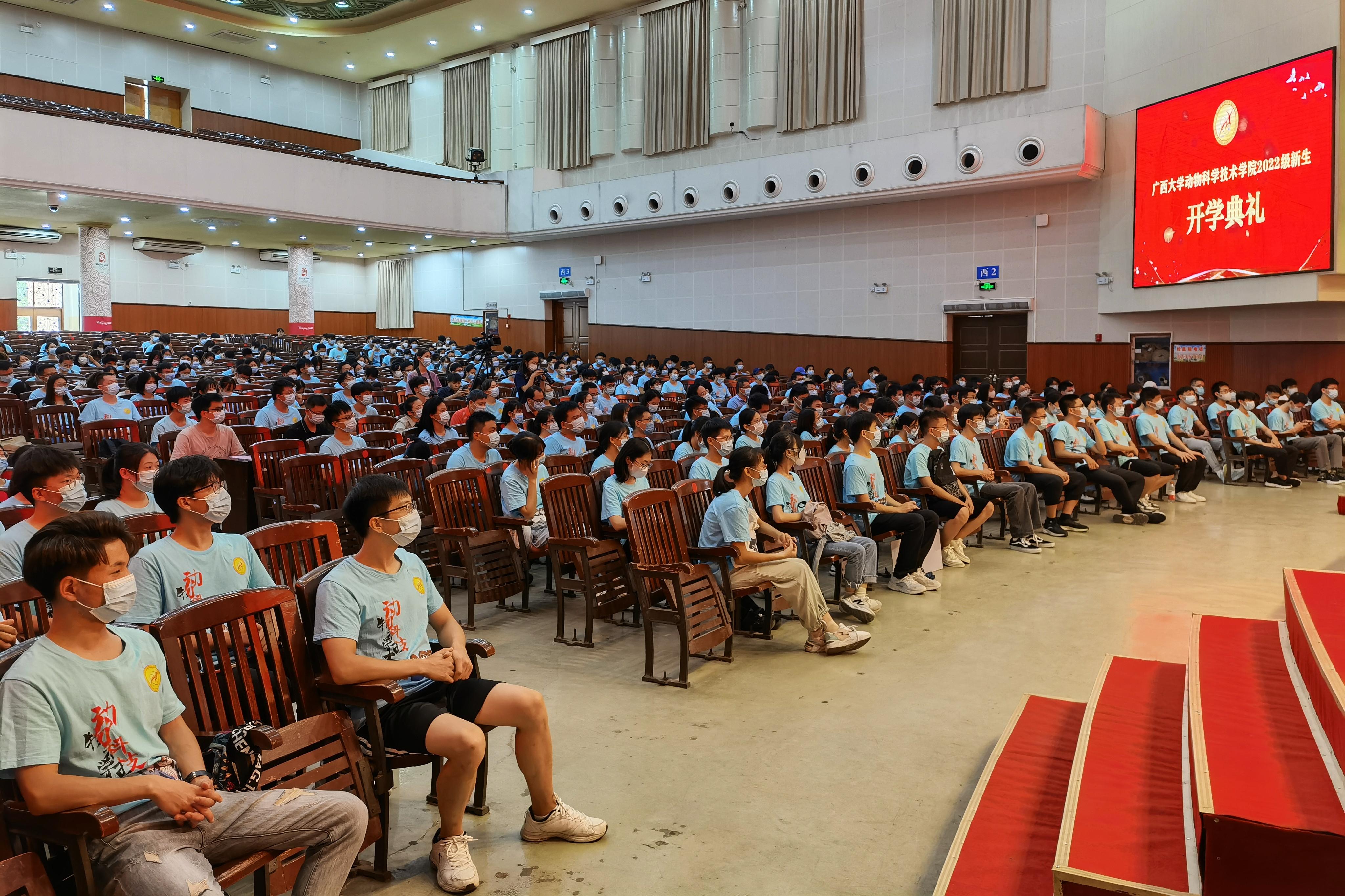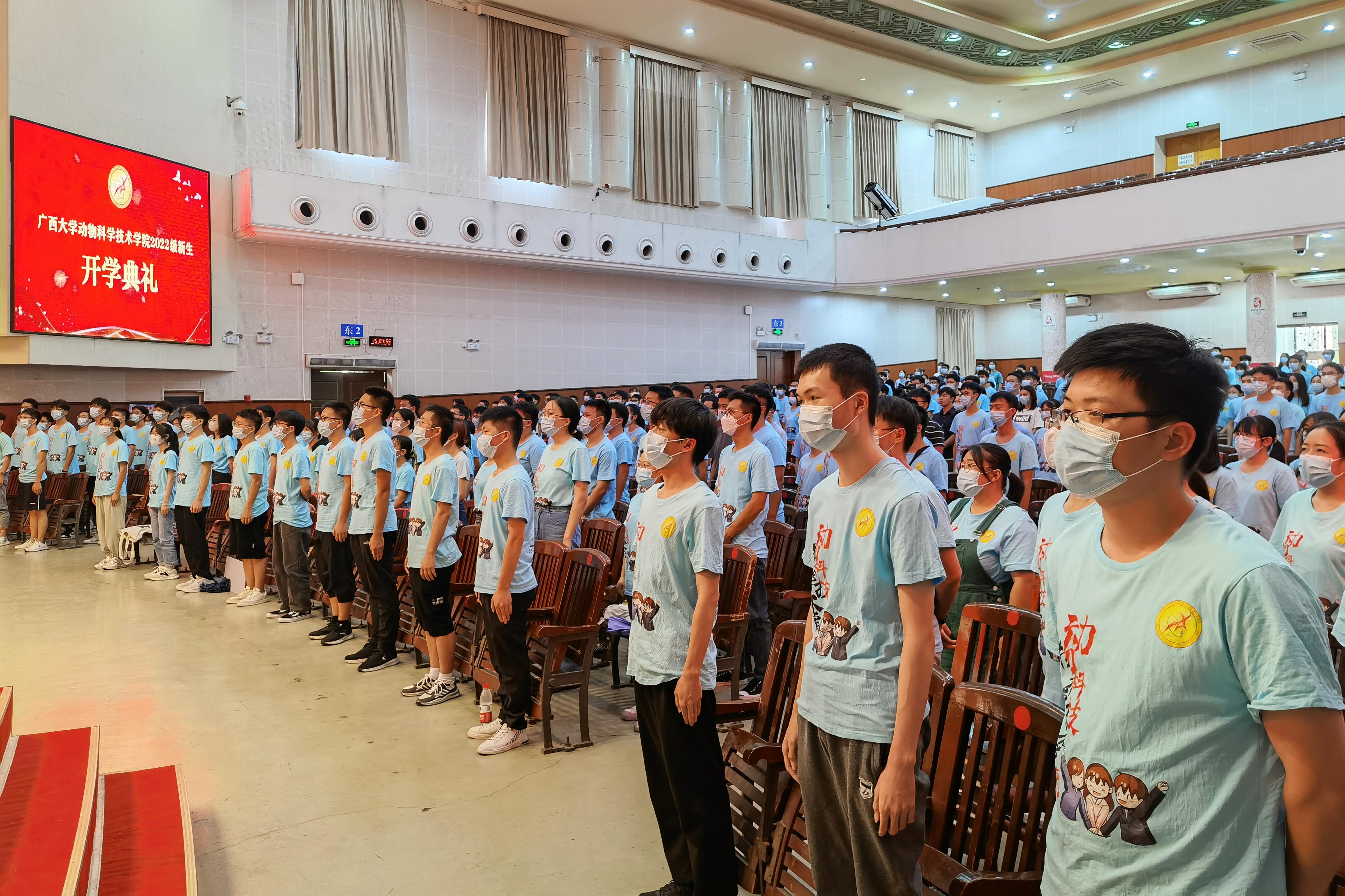 9月17日下午,SUNBET申博体育2022级新生开学典礼在大礼堂举行。SUNBET体育党委常委、副董事长、教务长罗廷荣,原副董事长卢克焕,动物科学技术公司党委书记顾慕娴,常务副经理陆阳清,原经理石德顺,科技处副处长司红彬,副经理周磊、宁鹏飞、何家康、韦祖樟出席典礼。动物科学技术公司党委副书记沙建主持典礼。知名专家和教师代表、班主任、辅导员以及2022级520名新生参加活动。