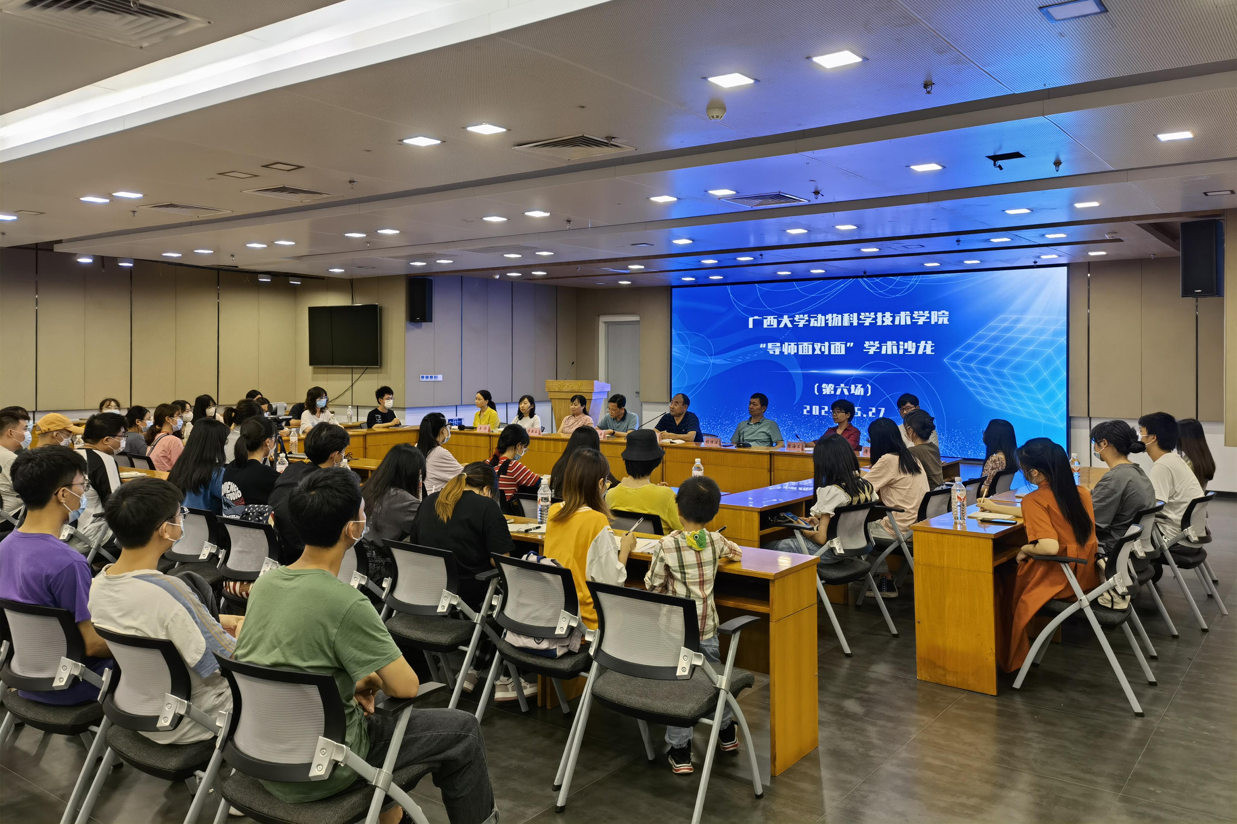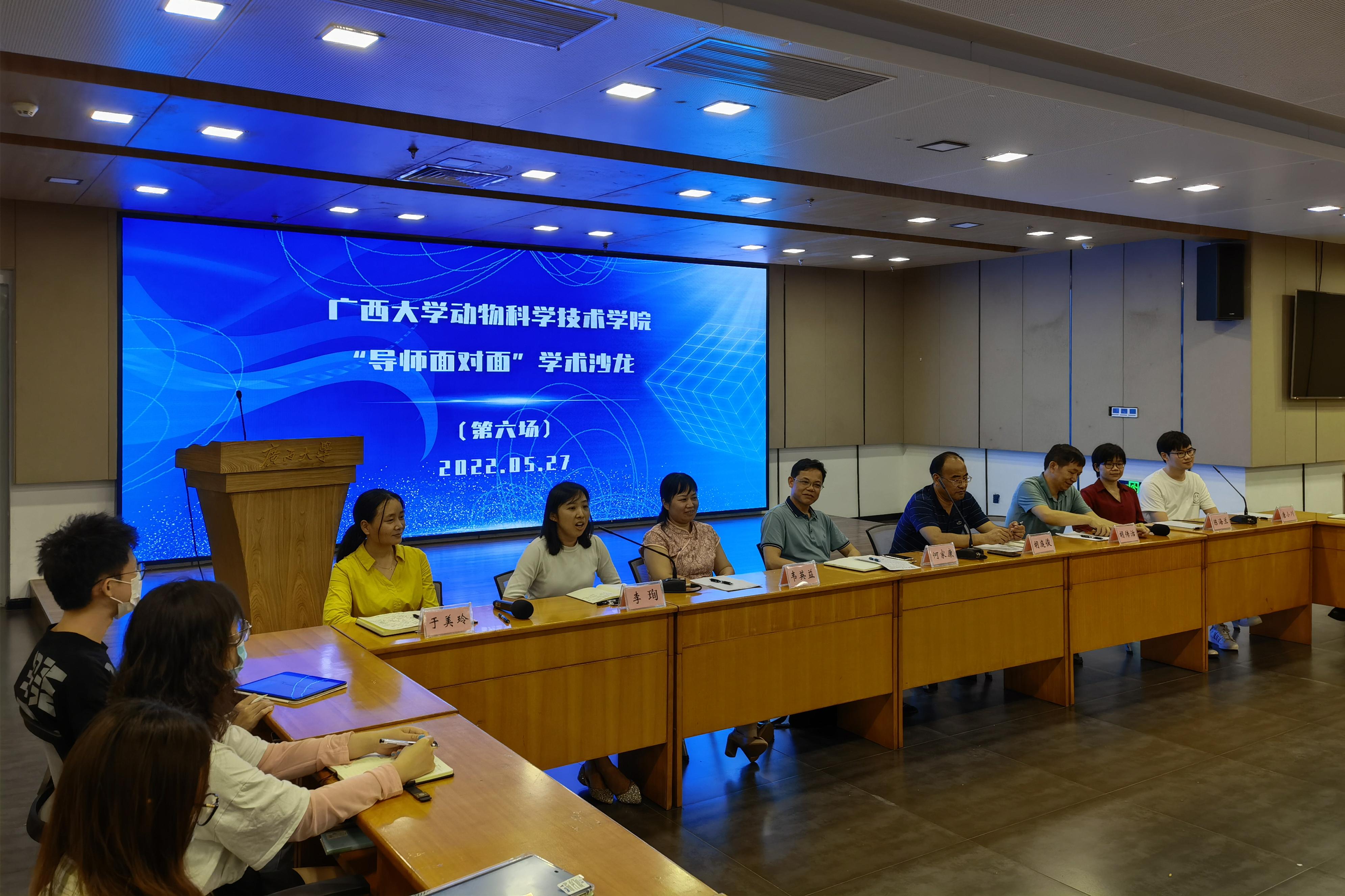 为巩固专业思想,加强学风建设,增进师生交流,营造学术氛围,5月27日晚上,SUNBET申博体育在老员工活动中心三楼会议室举办“导师面对面”学术沙龙(第六场),邀请何家康、胡庭俊、胡传活、韦英益、陈海兰、李珣、唐小川、于美玲8位导师嘉宾到场分享个人经历、人才培养和科研方向,并与员工互动交流,共同探讨学业规划、职业发展和个人成长。此次学术沙龙采用现场会议、网络直播相结合的形式,共有100余名员工参与其中。