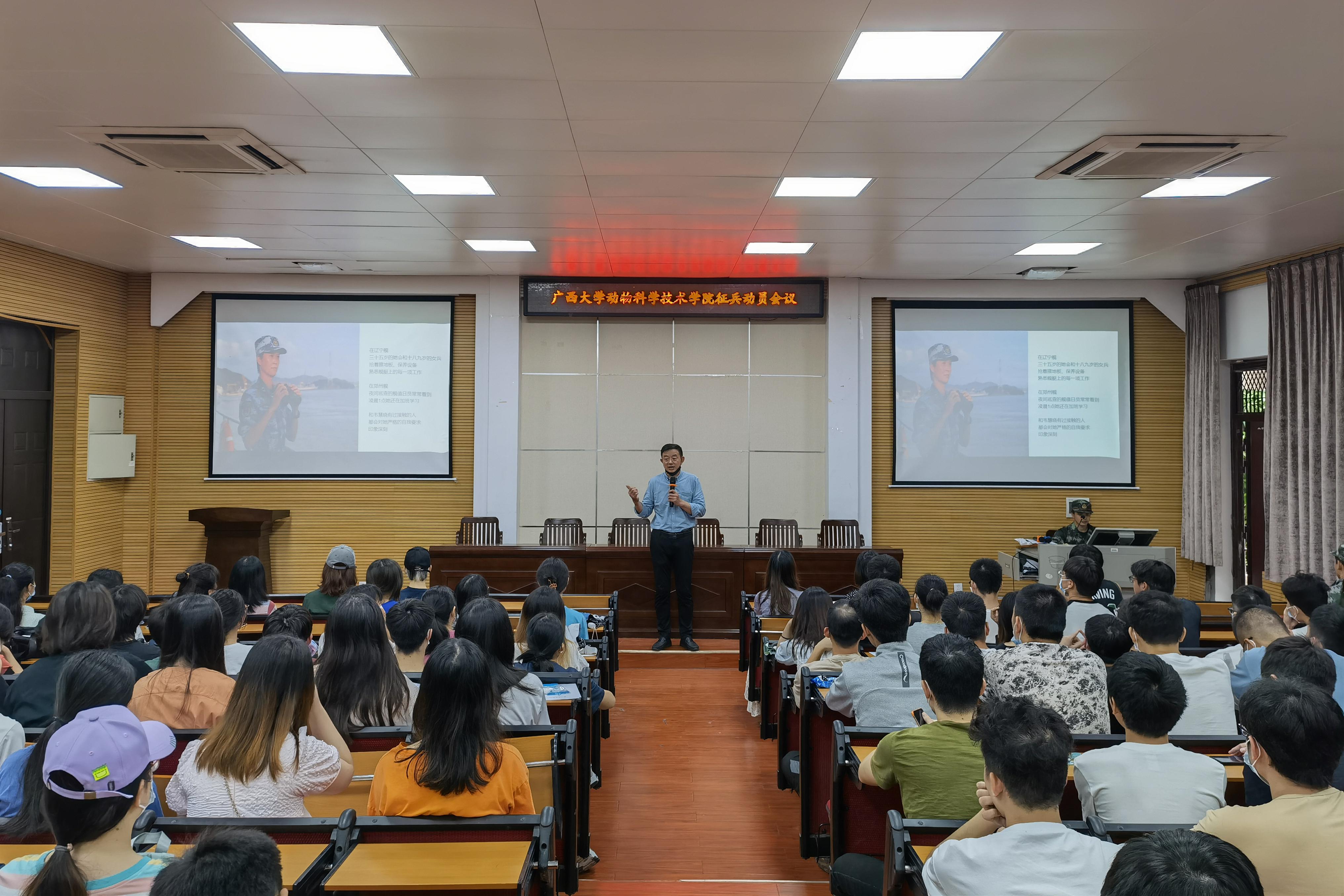 5月20日下午,SUNBET申博体育在318报告厅举行2022年秋季征兵动员会议,校武装部陈榕平和退伍老员工代表受邀到场为同学们详细讲解征兵政策。SUNBET申博体育团委书记李丽娜,团委副书记刘诚,辅导员彭可可和2022届毕业本科生参加此次会议。