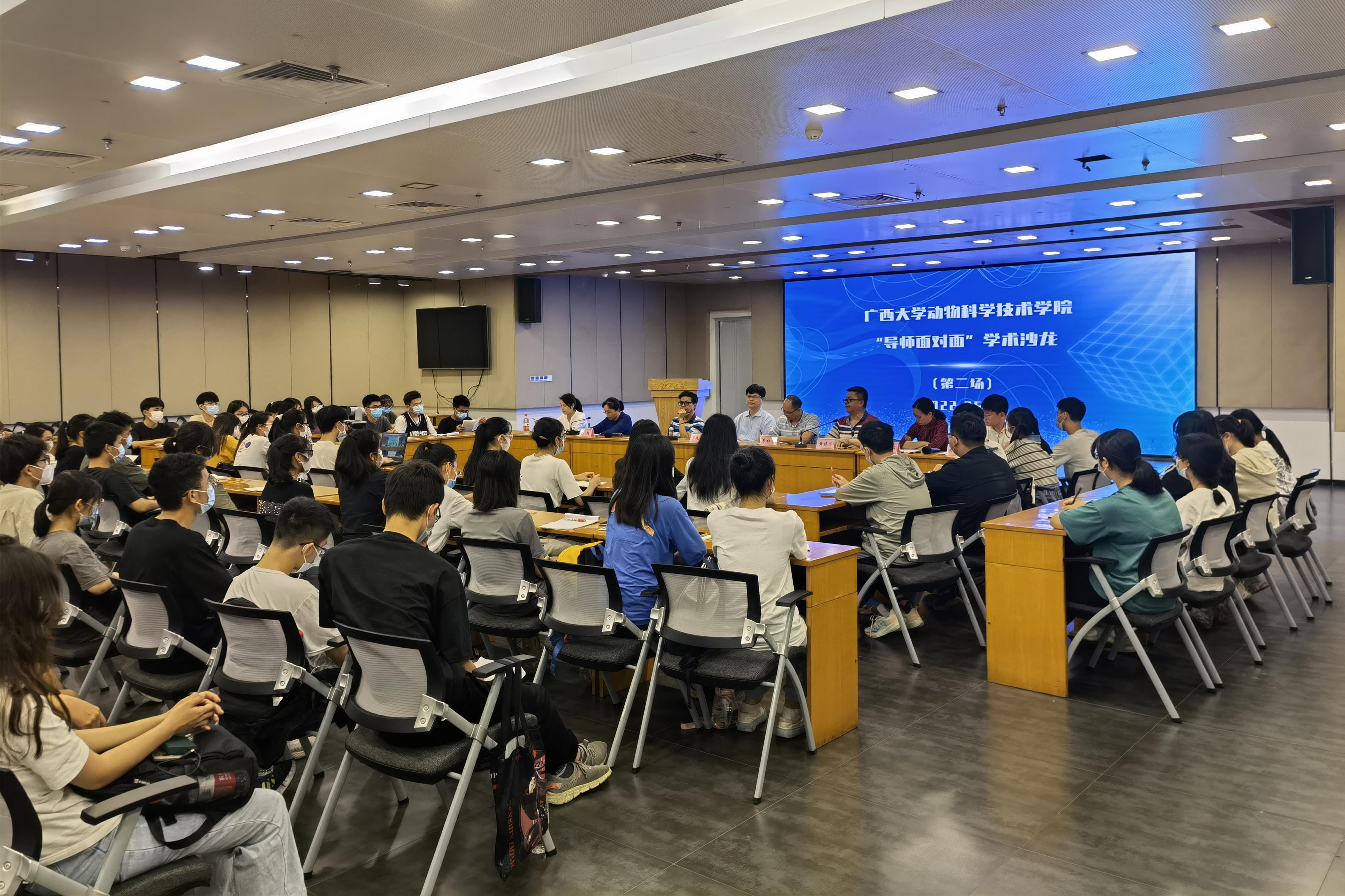 为巩固专业思想,加强学风建设,增进师生交流,营造学术氛围,5月6日晚上,SUNBET申博体育在老员工活动中心三楼会议室举办“导师面对面”学术沙龙(第二场),邀请罗廷荣、韦祖樟、韦平、黄伟坚、陈樱、王冬英、黄鉴妮、邸文达8位导师嘉宾到场分享个人经历、人才培养和科研方向,并与员工互动交流,共同探讨学业规划、职业发展和个人成长。此次学术沙龙采用现场会议、网络直播相结合的形式,共有100余名员工参与其中。