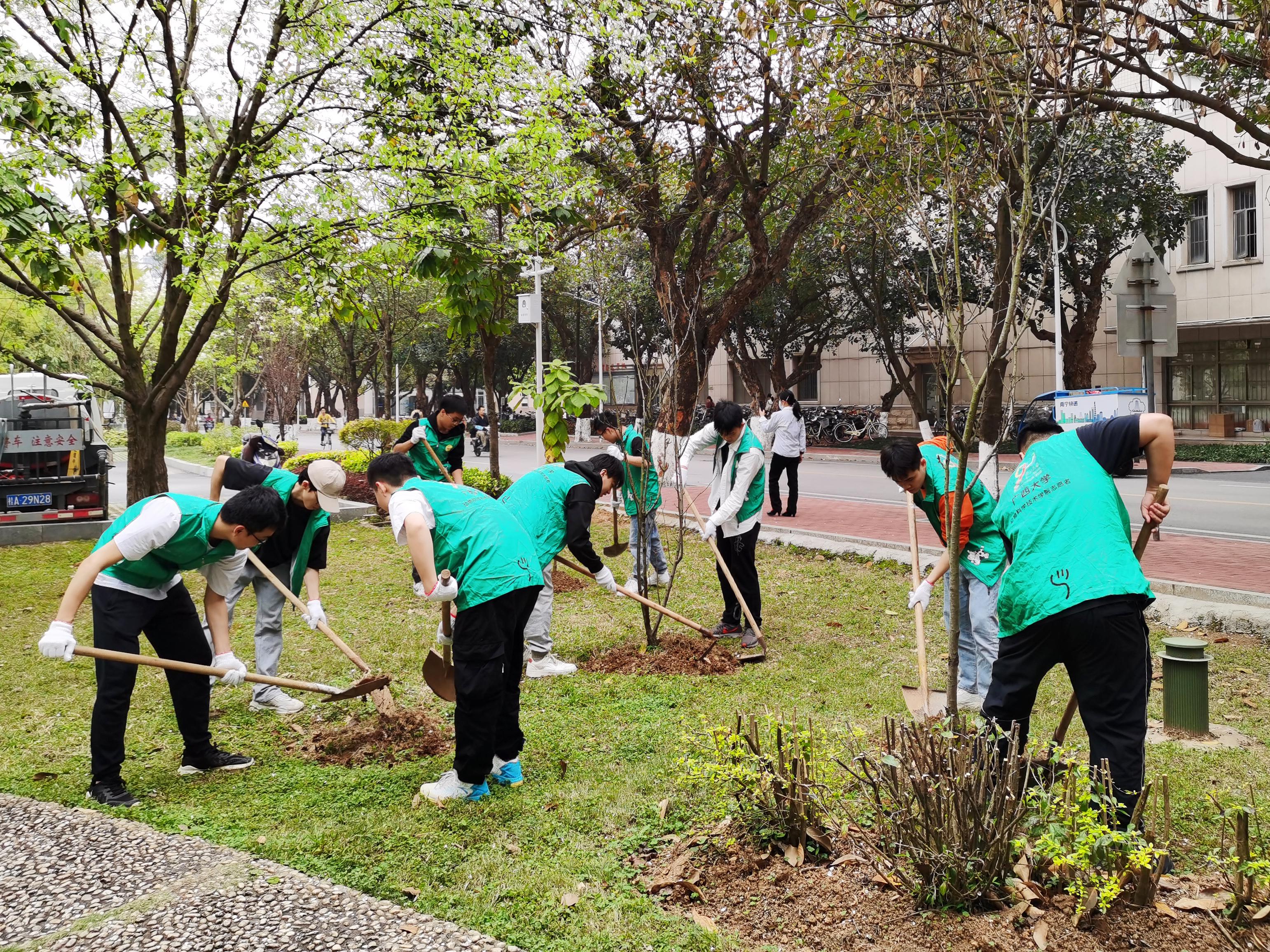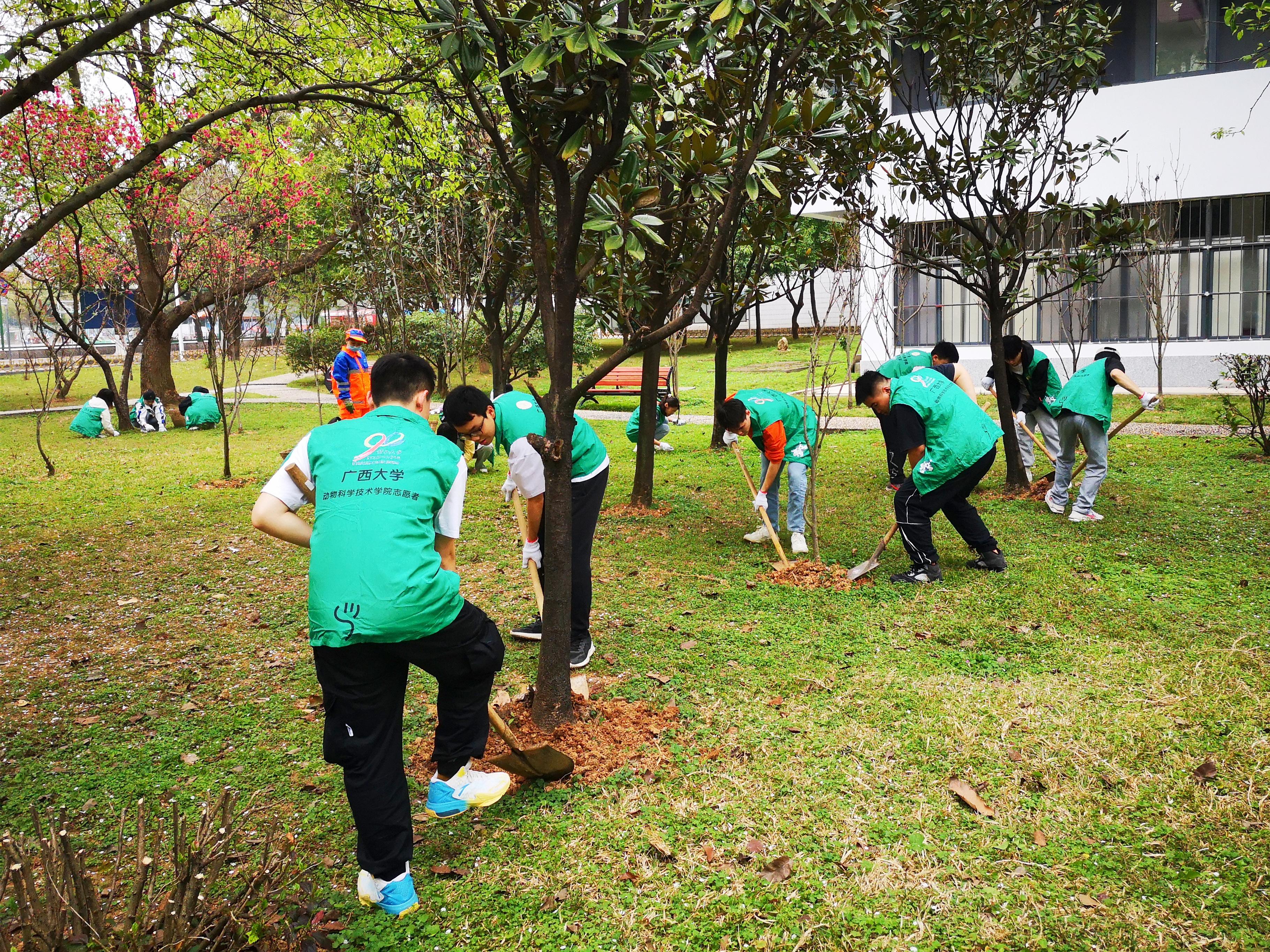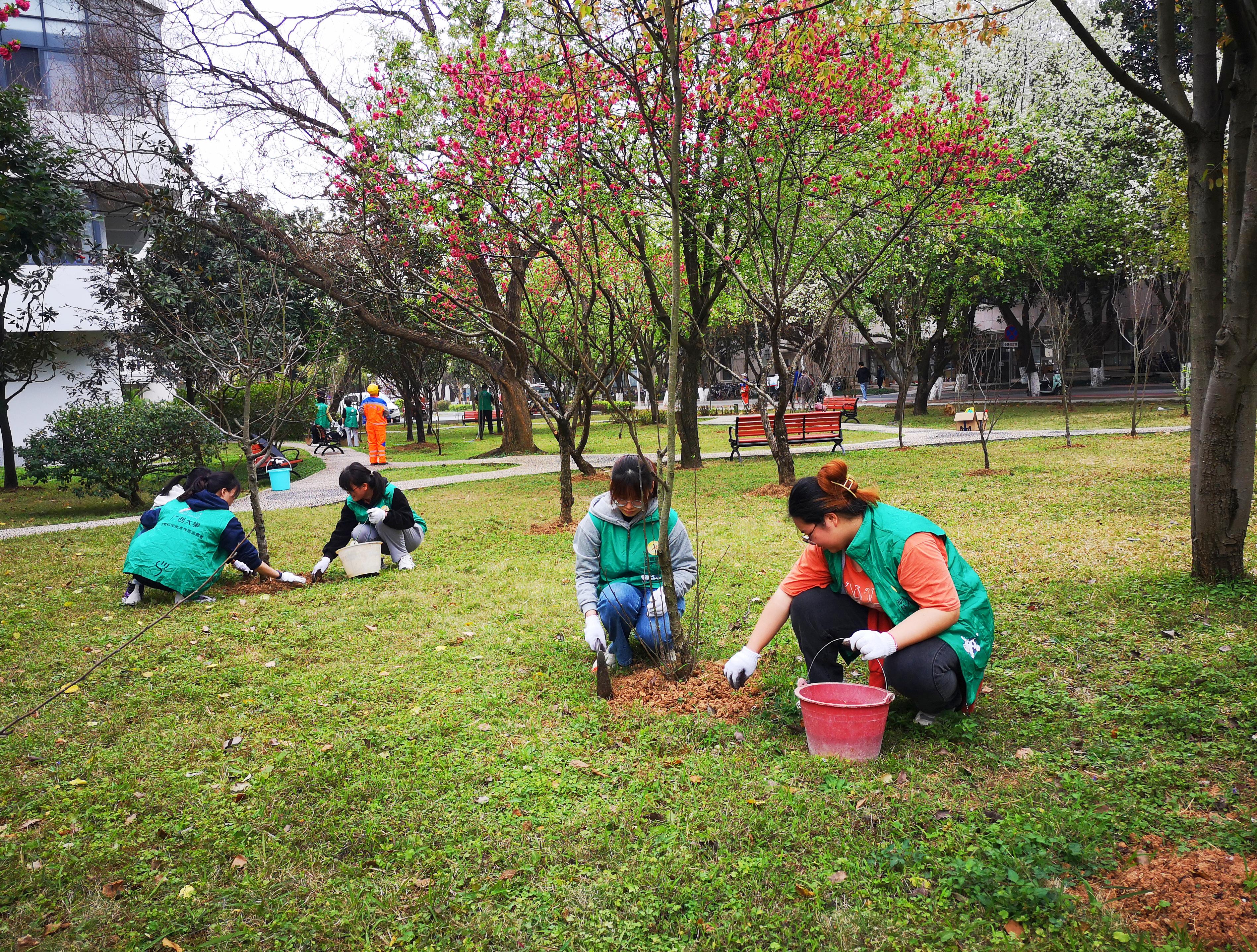 阳春三月,百卉含英。3月12日下午,SUNBET申博体育30余名志愿者来到西校园公共绿地开展“传承雷锋精神,弘扬时代新风”养护树木志愿服务活动。