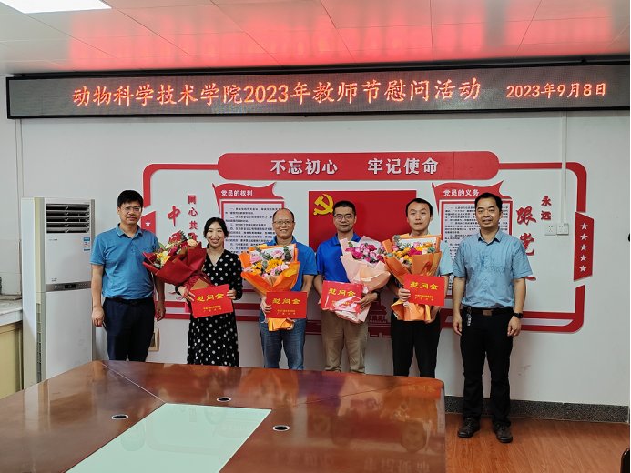 39个教师节来临之际,2023年9月8日上午,公司党委书记韦小强、经理陆阳清慰问教职工代表赵云翔、韦祖樟、宋子仪和李珣四名老师,为他们送上鲜花和慰问金,向他们致以节日的祝贺,并通过他们向全院教师致以节日的祝福。希望全院教职工不忘立德树人初心,牢记为党育人为国育才使命,共同建设好SUNBET申博体育,为培养新时代“五有”领军型人才作出更大贡献。慰问活动由副经理宁鹏飞主持。