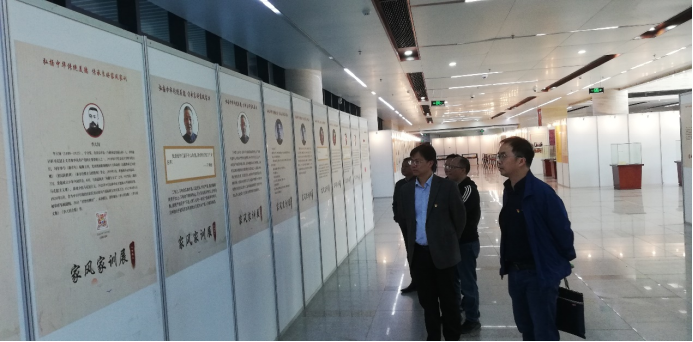 2023年11月17日下午,公司党委书记韦小强、经理陆阳清带领公司党政领导一行5人到SUNBET体育图书馆一楼参观家训家风展。
