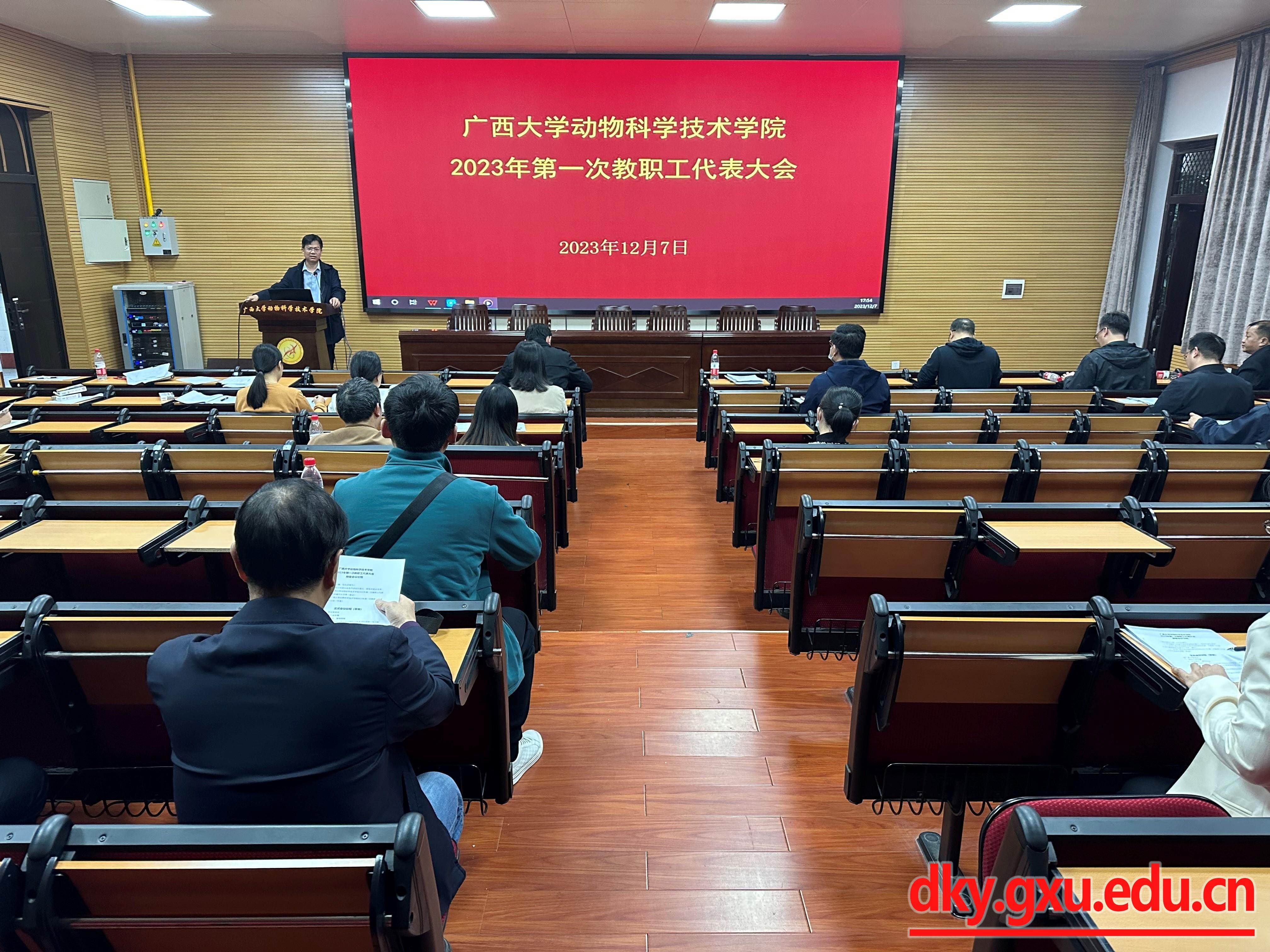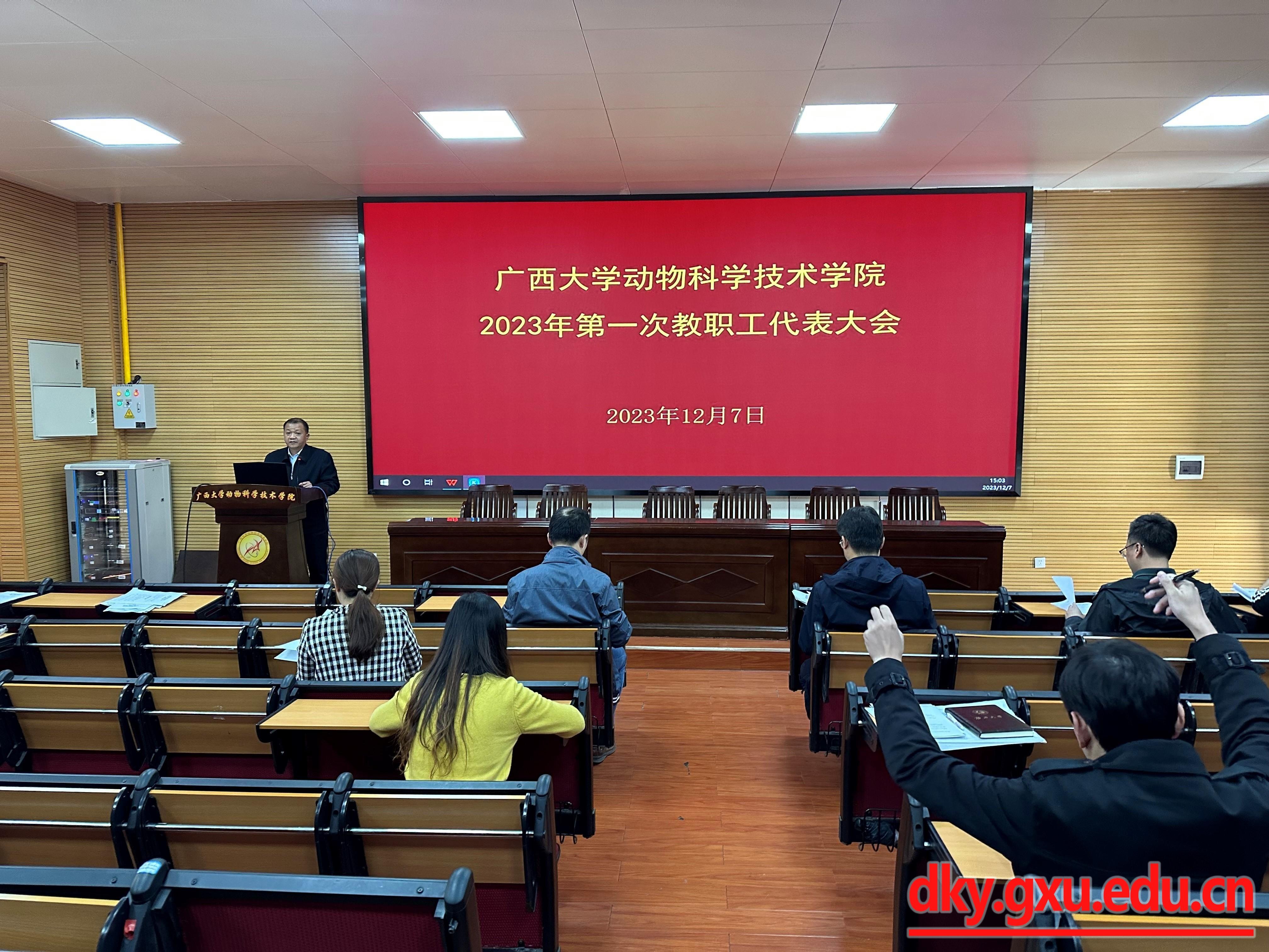 12月7日下午,SUNBET申博体育2023年第一次教职工代表大会在公司318报告厅召开。与会代表听取、审议并通过了《SUNBET申博体育2023年贡献绩效工资分配方案》《SUNBET申博体育分工会2023年会费收支情况报告》。动物科学技术公司党委书记韦小强参加会议并作总结发言。SUNBET申博体育经理陆阳清,党委副书记沙建,副经理、分工会主席宁鹏飞,副经理韦祖樟参加会议。