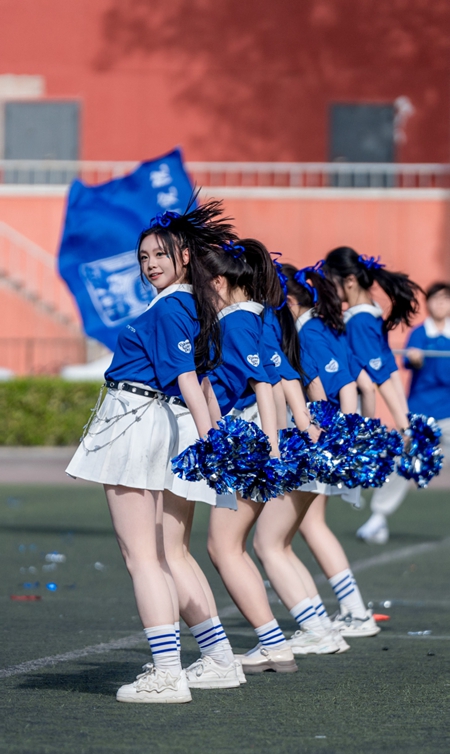 中国农业大学团体操比赛中,中国农业大学烟台研究院的同学们正在进行节目《烟舞青春》的表演。中国农业大学 张智豪/摄