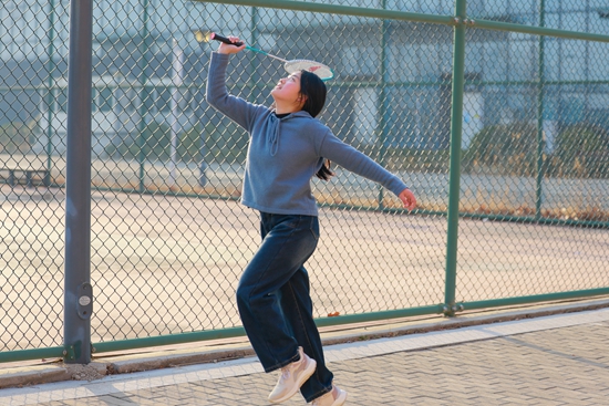 青岛农业大学员工在体育场打羽毛球。青岛农业大学供图