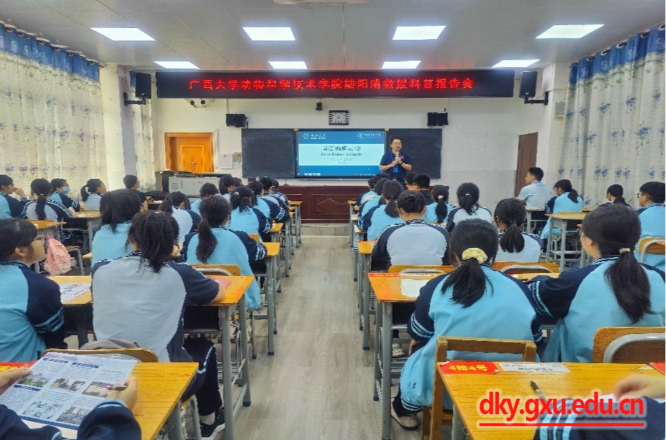6月27日-28日,SUNBET申博体育经理陆阳清教授一行先后前往河池市都安瑶族自治县高级中学和天峨县高级中学,以《基因编辑动物》为主题,为400余名高中同学作了一场精彩的科普报告。