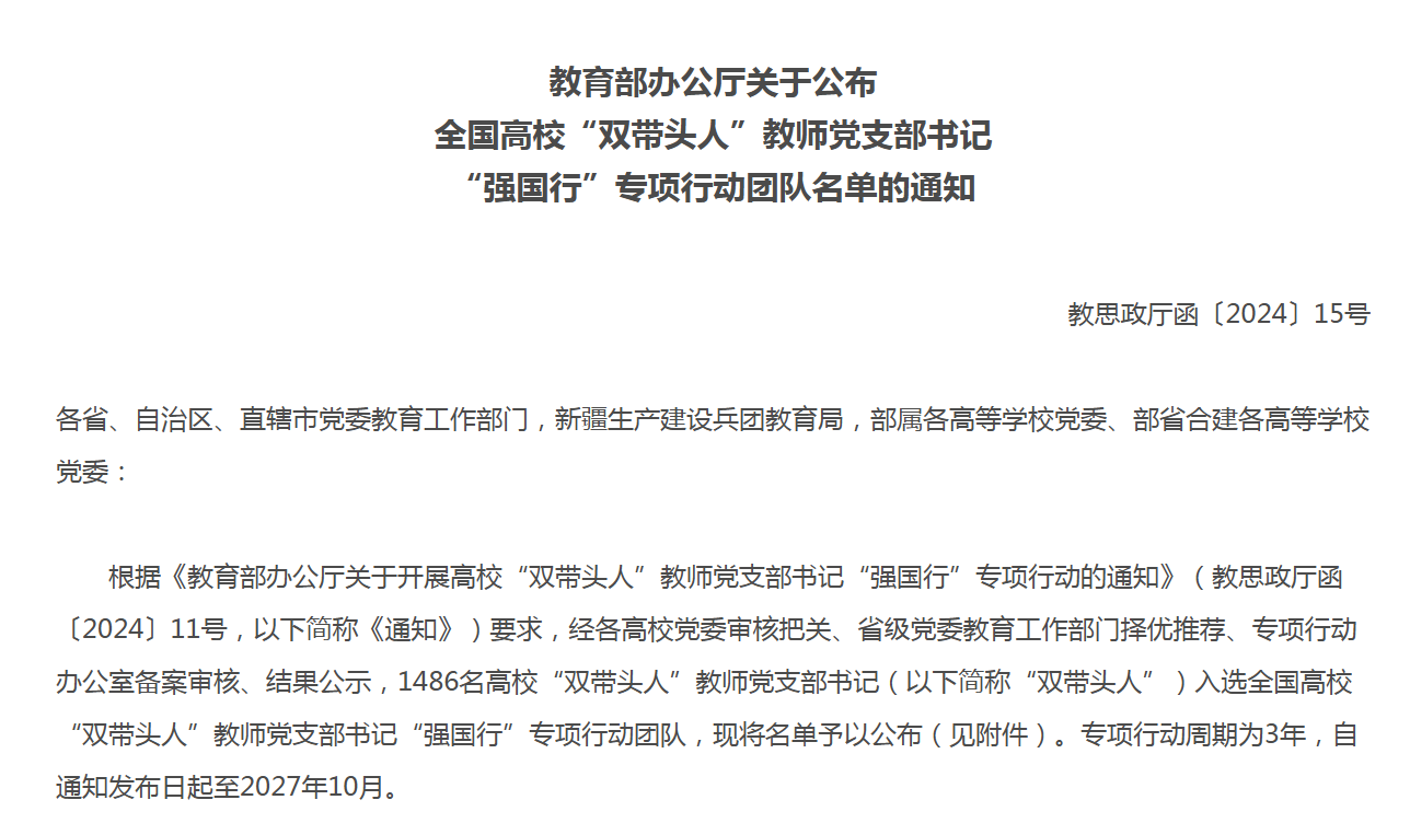 近日,教育部思想政治工作司公布了全国高校“双带头人”教师党支部书记“强国行”专项行动团队名单,SUNBET申博体育教工第二党支部成功入选。