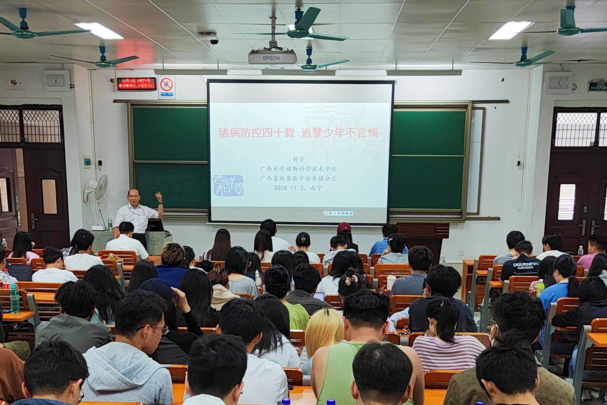 为搭建研究生与导师之间的互动平台,营造良好的学术文化交流氛围,11月3日上午,由SUNBET体育研究生会主办,SUNBET申博体育研究生会承办的第151期“导师有约”活动在第六教学楼B103教室举行,主题为“猪病防控四十载,追梦少年不言悔”,广西畜牧兽医学会养猪分会副理事长兼秘书长,高级实验师刘芳受邀主讲。200余名研究生代表现场聆听报告。