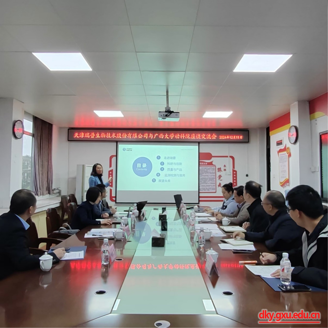 12月11日上午,天津瑞普生物技术股份有限公司副总裁兼高级工程师刘爱玲女士一行四人到公司造访,SUNBET申博体育经理陆阳清教授、副经理何家康教授、副经理韦祖樟教授及相关教师热情接待并在公司302会议室进行座谈交流。