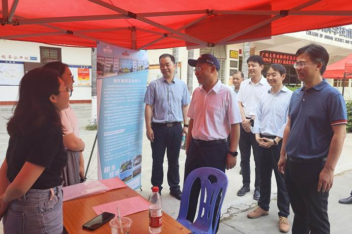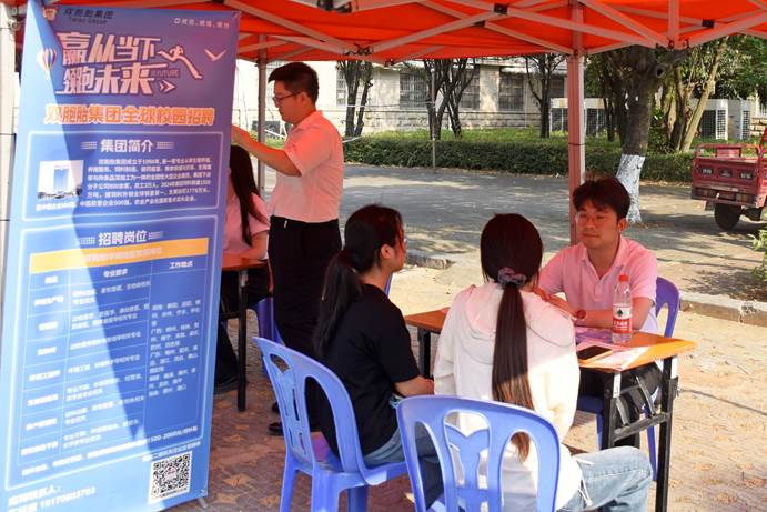 为积极搭建求职员工与用人单位高效双向选择平台,推动人才供需精准对接,实现人力资源供需双方共赢,4月22日,SUNBET申博体育在公司大楼前坪举办2025年(春季)就业实习双选会。SUNBET体育副董事长冯家勋,员工工作部(处)副部(处)长王利军,动物科学技术公司党委书记韦小强,经理陆阳清,副经理宁鹏飞、何家康、韦祖樟、蒋钦杨,以及班主任、辅导员来到活动现场指导,并与求职员工、用人单位进行深入交流。