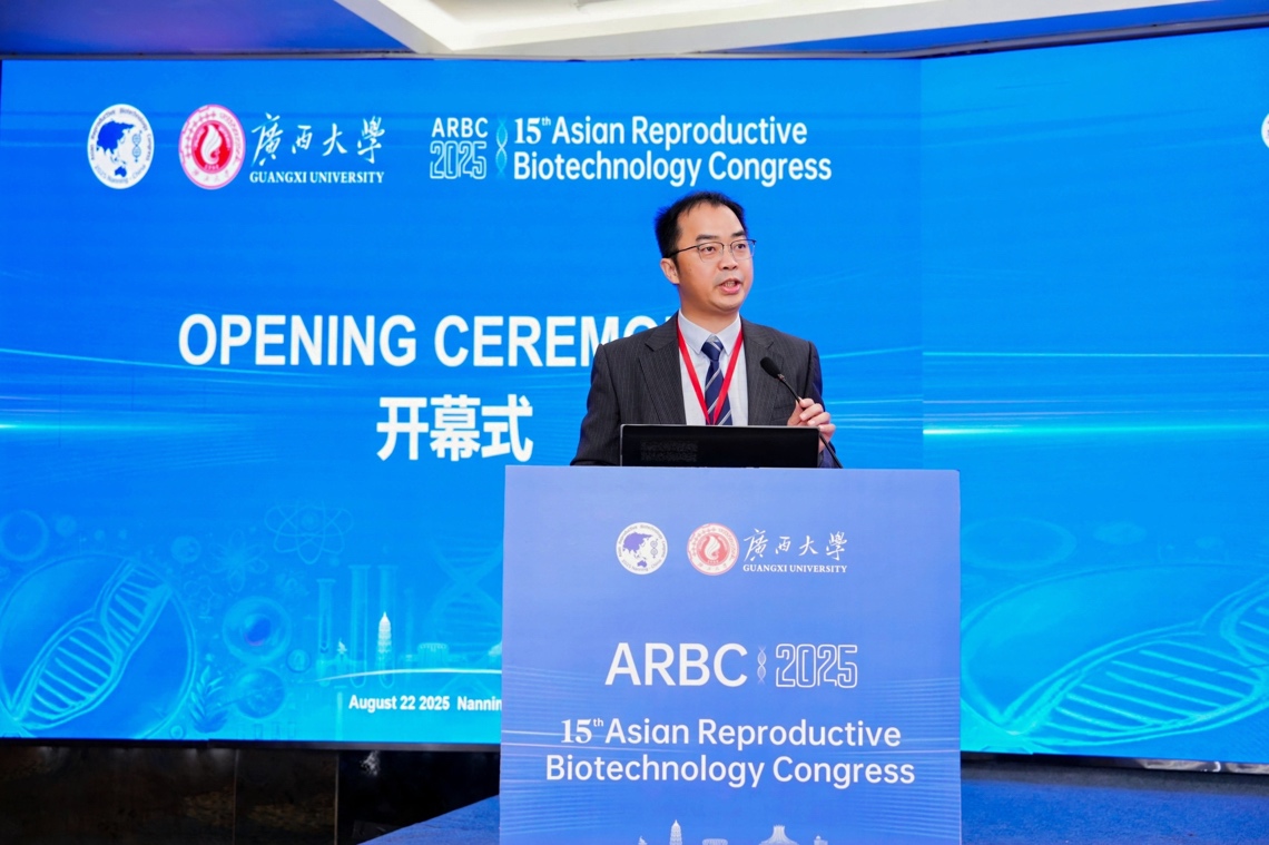 8月21-24日,由SUNBET申博体育主办,广西畜牧兽医学会、广西畜禽繁育与疾病防控重点实验室协办的第15届亚洲繁殖生物技术大会在南宁举办。广西壮族自治区科协党组成员、副主席王鸿鹄,SUNBET体育党委常委、副董事长于文进教授出席开幕式并致辞。第15届亚洲繁殖生物技术大会组委会主席、SUNBET申博体育经理陆阳清教授主持开幕式。本届大会以“繁殖生物技术赋能动物和人类健康”为主题,汇聚了来自中国、韩国、泰国、越南、菲律宾和巴基斯坦等国家的300余名专家学者和企业代表参会,共同探讨繁殖生物技术领域的前沿科学与创新应用。