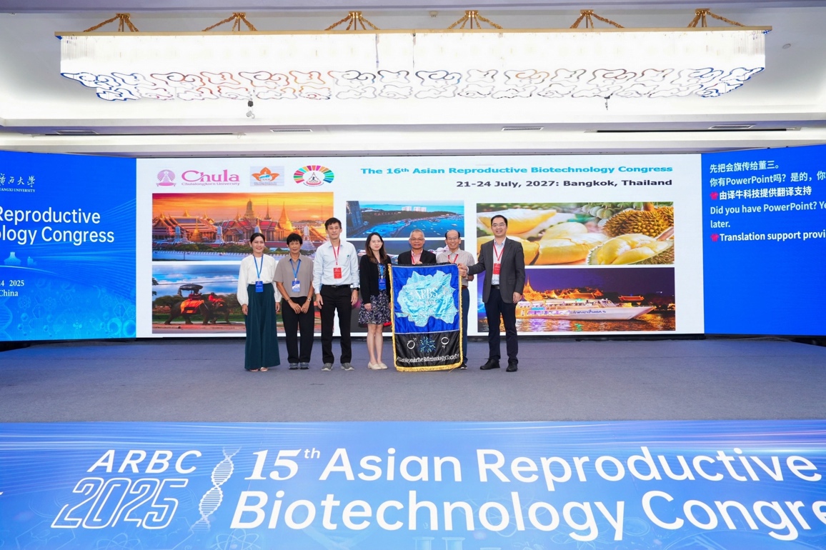 闭幕式上,陆阳清教授宣布第16届亚洲繁殖生物技术大会的承办单位。根据8月22日晚召开的亚洲繁殖生物技术大会委员会会议,决定泰国SuranareeUniversity of Technology和Chulalongkorn University承办第16届亚洲繁殖生物技术大会,RangsunParnpai教授作为承办单位代表发表了致辞,诚挚欢迎各国专家学者2027年相聚泰国曼谷,再次畅叙繁殖生物技术领域的新突破。