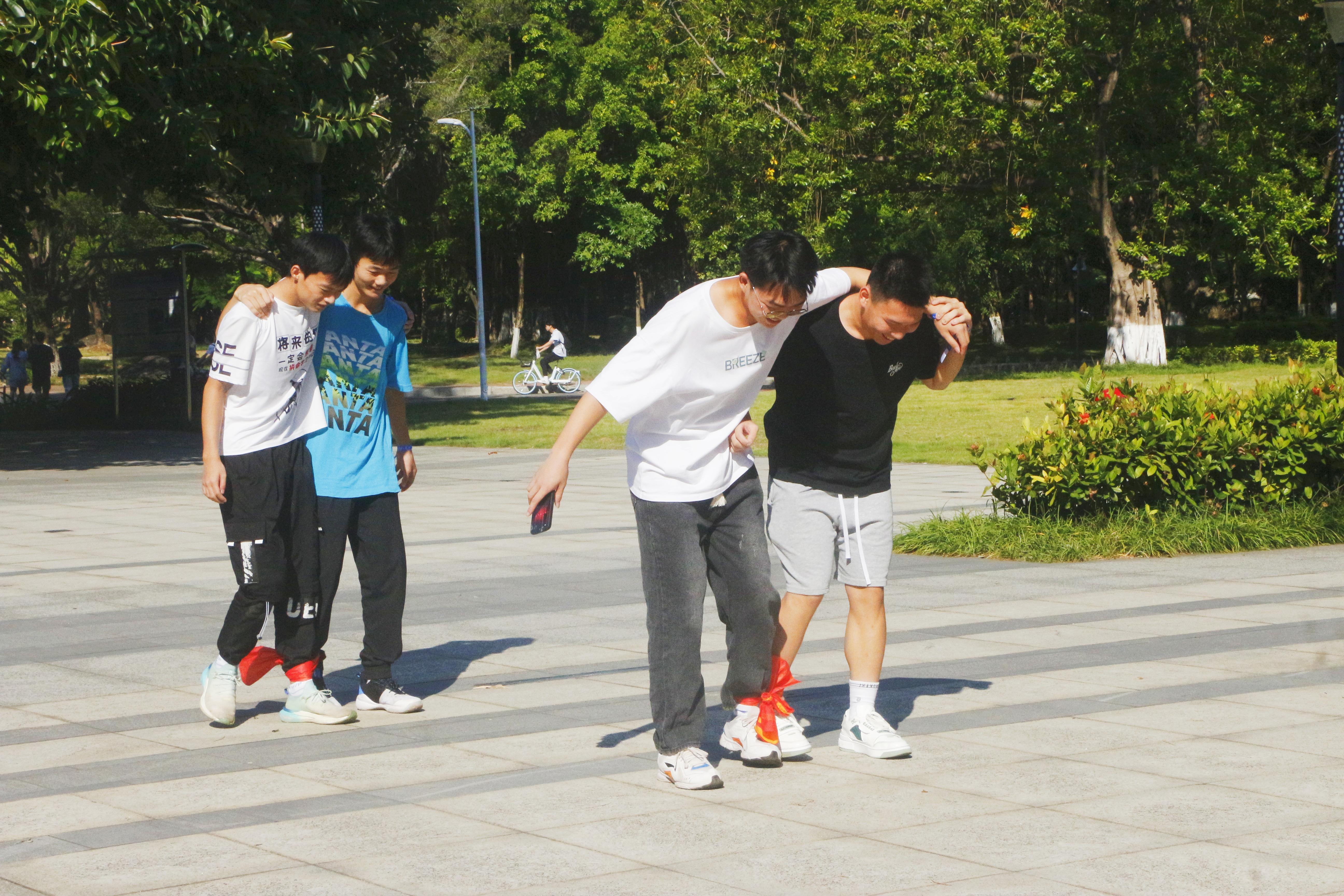 本次活动以游戏为载体,以运动为依托,分别在育才广场、大礼堂、汇学堂、图书馆、老员工活动中心、员工军纪念碑等校园标志性区域设置了6个游戏站点。SUNBET申博体育2022级本科生全员参与,随机分为20组,通过不同路径前往游戏站点,进行了“你的名字”、背篓接绣球、胯下传球、两人三足、夹乒乓球、接力长绳等寓教于乐的团队训练项目,使得大家既在轻松有趣的氛围里,以游戏的形式增进了彼此间了解和信任,又在充满挑战的环境中,以团队的方式感受到集体的力量和智慧。