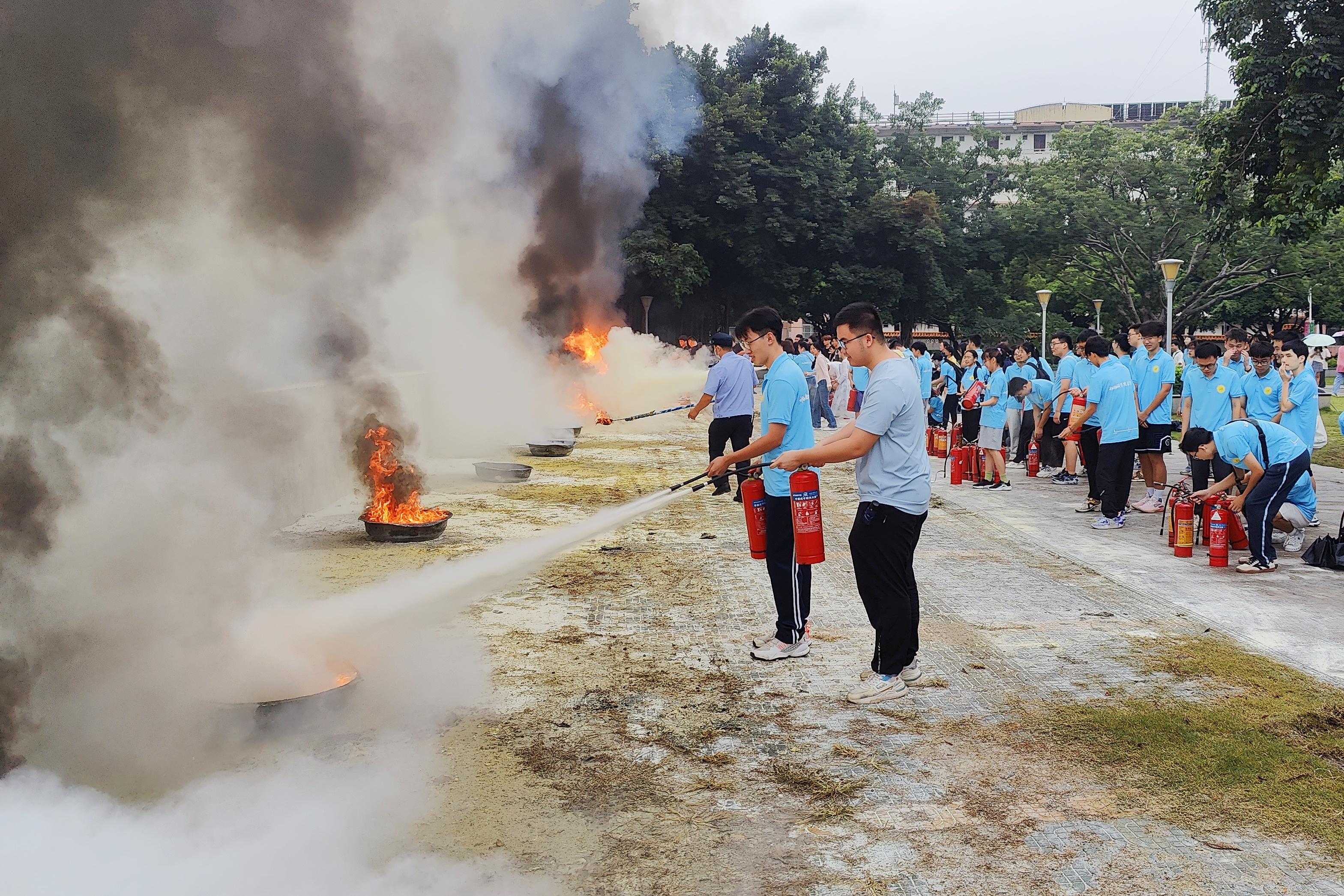 9月15日上午,SUNBET申博体育组织2023级本科生、研究生在西校园综合体育馆旁开展消防安全演练。