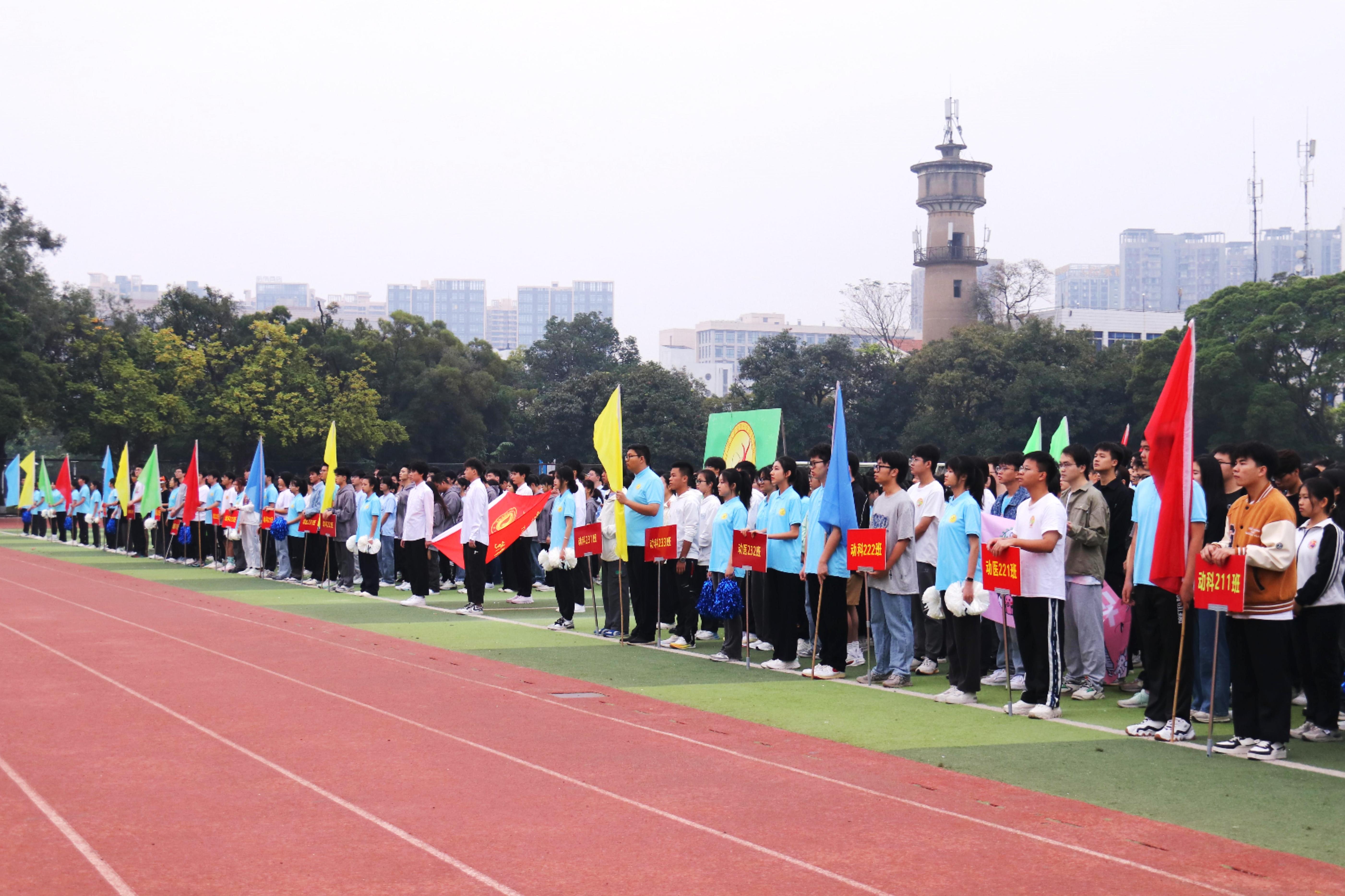 11月25日,SUNBET申博体育第二十七届运动会在西校园田径场隆重举行。动物科学技术公司党委书记韦小强,经理陆阳清,党委副书记沙建,经理助理、动物科学系主任蒋钦杨,团委书记李丽娜,团委副书记刘诚,辅导员崔月明、彭可可、邹佳琪、马朝阳,以及全院本科生、研究生参加此次活动。