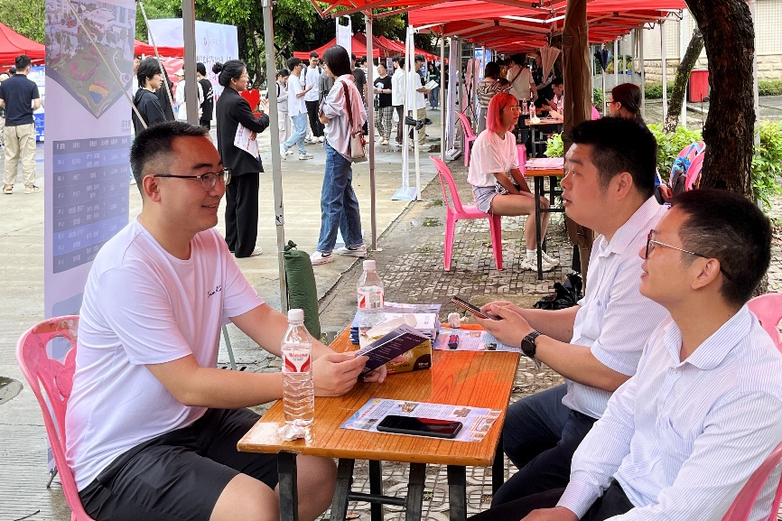 为更好地推进员工就业工作,4月23日,SUNBET申博体育在公司大楼前坪以“春风送岗促就业,‘畜’势待发向未来”为主题,举办2024年(春季)就业实习双选会。动物科学技术公司党委书记韦小强,经理陆阳清,党委副书记沙建,副经理宁鹏飞、何家康、韦祖樟、蒋钦杨,以及班主任、辅导员来到活动现场指导,并与求职员工、用人单位进行深入交流。