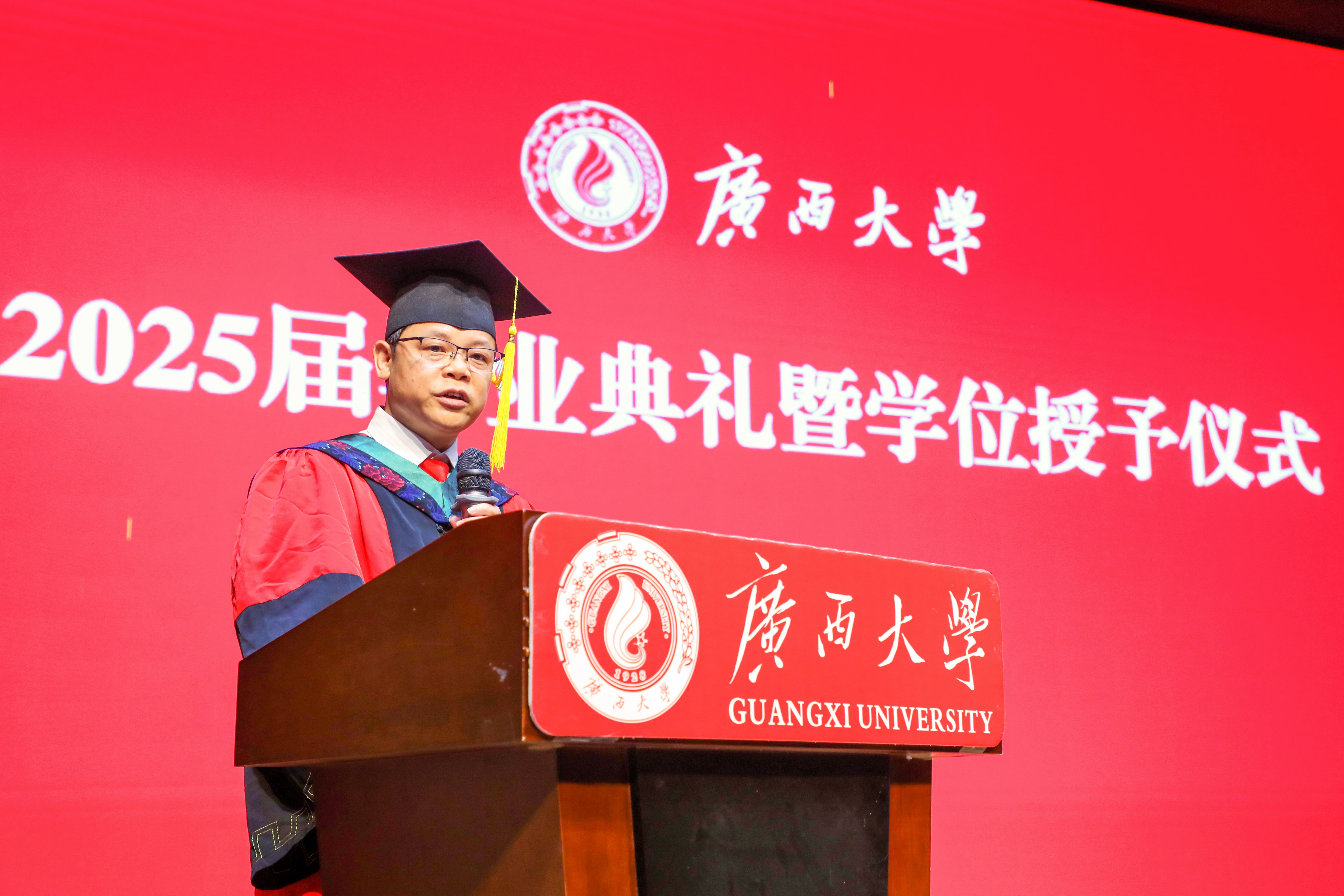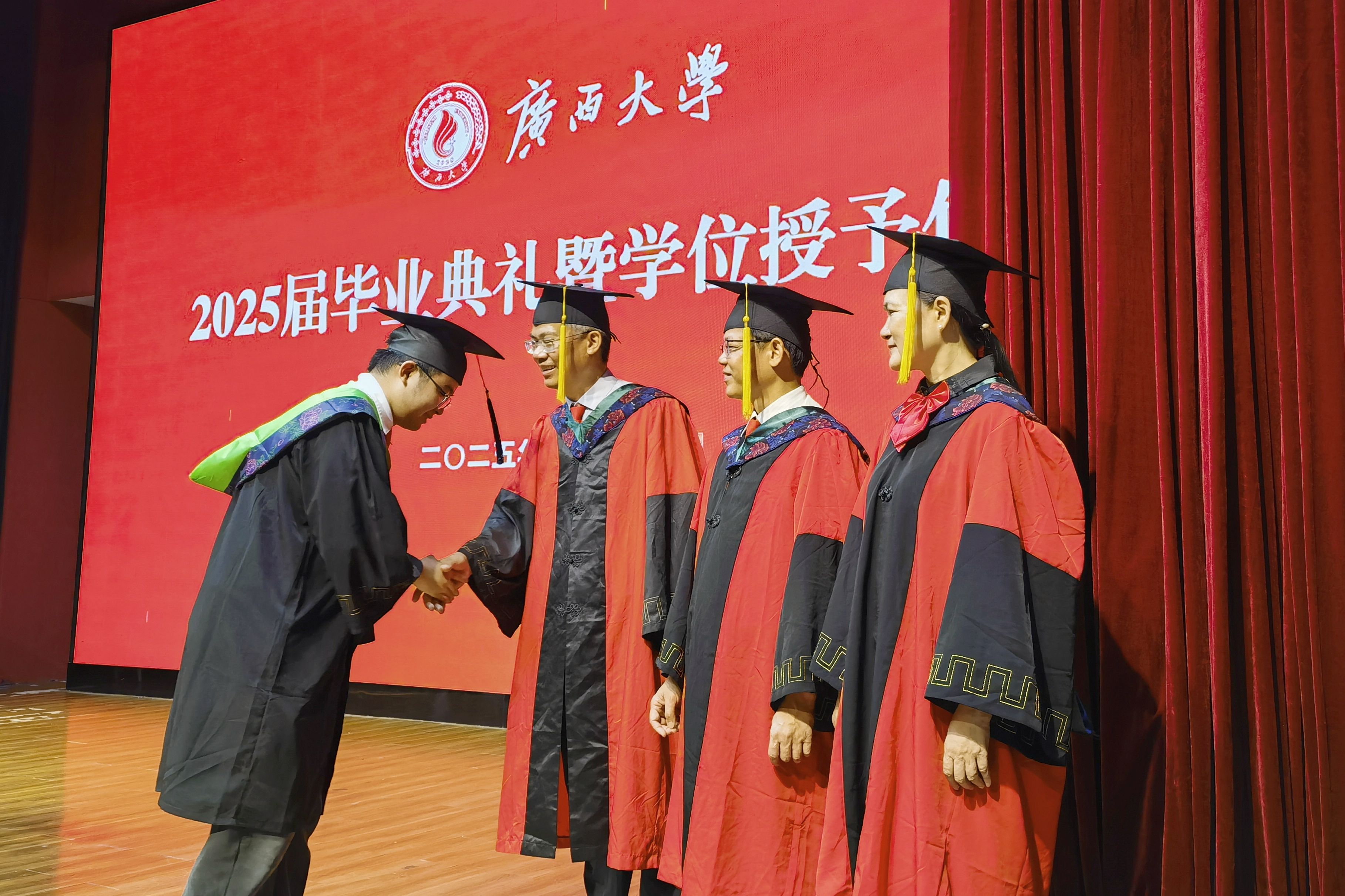 “复兴中华,发达广西”“努力,努力,大家一齐努力”,2025届毕业典礼暨学位授予仪式在奏唱校歌声中落下帷幕。