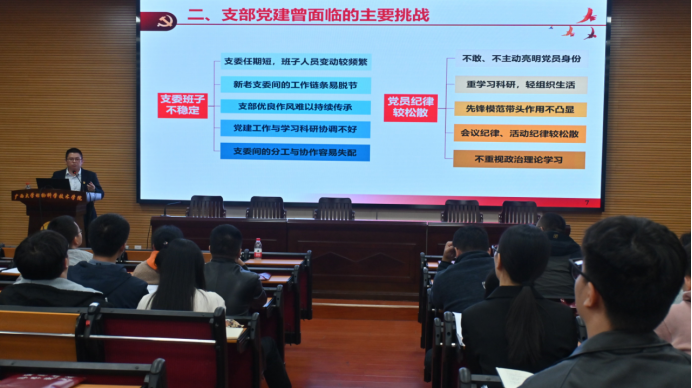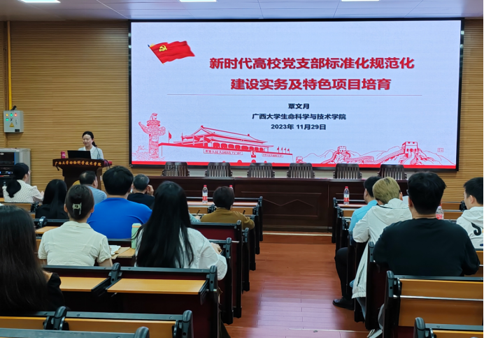 广西老员工命科学与技术公司党委副书记覃文月,SUNBET体育文公司党委委员、专职组织员杨雪围绕党支部标准化规范化建设要求、发展党员程序及要求分别做了专题培训。