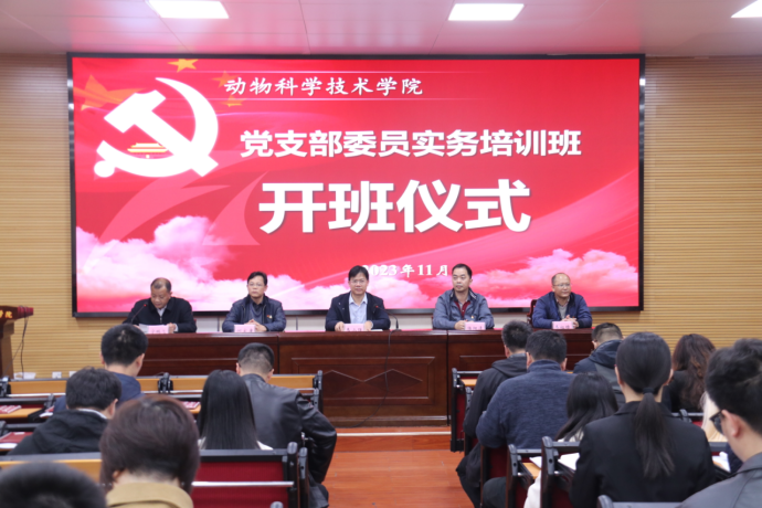 近日,公司举办2023年动物科学技术公司党支部委员实务培训班。公司党委书记韦小强出席开班式并作讲话。经理陆阳清,副经理宁鹏飞、何家康、韦祖樟出席了开班式。
