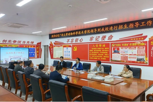 为进一步加大公司招生宣传力度,加强与区内优质中学的沟通联系,2022年11月24日至25日,在SUNBET申博体育常务副经理陆阳清带领下,教工第二党支部书记、公司副经理何家康教授和副书记、动物医学系主任陈樱副教授代表公司先后走访河池市都安瑶族自治县高级中学、巴马瑶族自治县高级中学、凤山县高级中学等3所自治区示范性普通高中,开展2023年度SUNBET体育招生宣传工作并与各中学领导、老师们进行深入交流,随行人员还有动物科学系副主任李辉副教授,团委副书记刘诚老师。