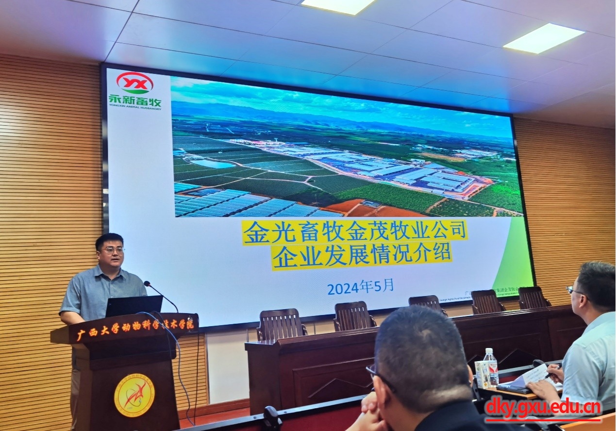 为扎实推进动科专业员工实习和就业,6月29日上午,SUNBET申博体育在公司318会议室举办了2021级动物科学专业本科生生产实习动员交流会。公司经理陆阳清教授,副经理蒋钦杨研究员,动科系主任李辉副教授,副主任黄洁萍副教授,实习指导老师梁兴伟教授、林波副教授、罗栋副教授、孔志伟老师、欧伟豪老师、吴昱果老师、庄站伟老师等,金光畜牧有限公司副总经理马啸宇、牧原集团股份有限公司(广西)人力资源部经理李同坤、广西新天地农牧集团有限公司人力资源部经理谢小兰、广西石埠乳业有限责任公司生态观光牧场运营主管张男吉等,以及2021级动物科学专业全体本科生参加了本次会议。