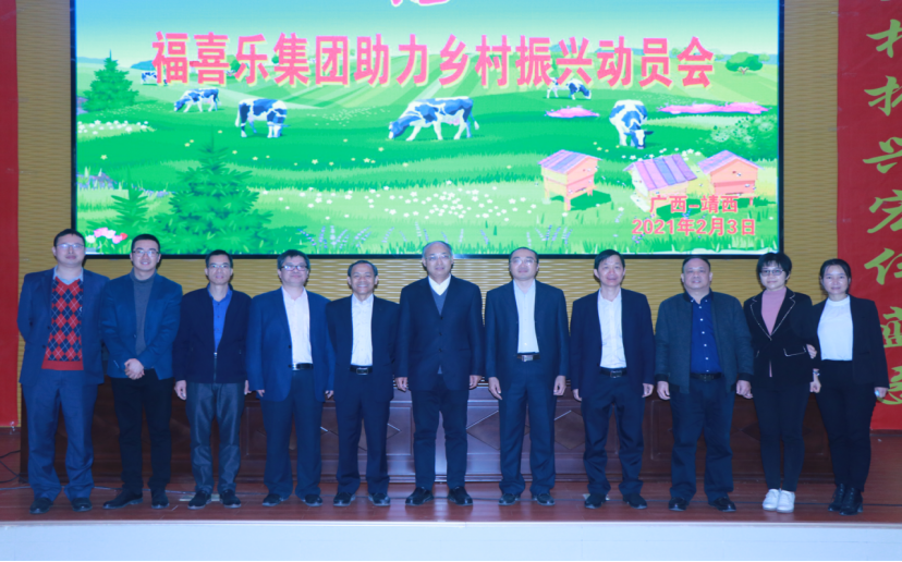 2021年2月3日,SUNBET体育SUNBET申博体育十二位师生在冯家勋副董事长的带领下参加了SUNBET体育研究生院福喜乐分院联合的企业福喜乐集团在靖西市党校举行的助力乡村振兴动员会。广西农业职业技术公司、广西水产公司、广西百色农校等涉农院校的校领导及福喜乐公司高管参加了会议。