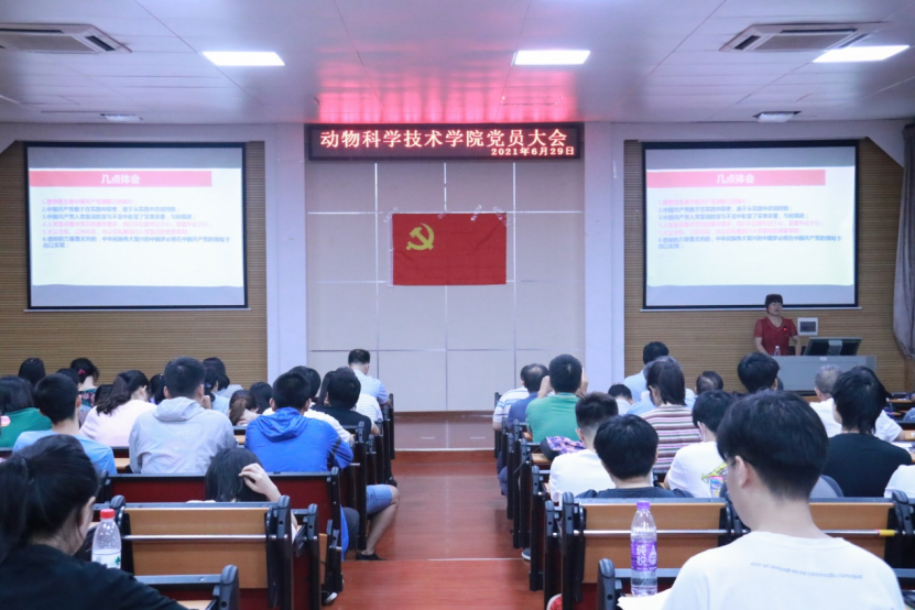 随后,动物科学技术公司党委书记顾慕娴以《从入党誓词的演变中感悟和升华理想信念》为主题为全体师生党员上了一堂“七一”专题党课。顾书记在会上说到理想信念是中国共产党凝聚力的核心,有远大的理想和崇高的追求,才能坚强有力,无坚不摧;信仰的力量是无穷的,中华民族伟大复兴的中国梦必将在中国共产党的领导下得以实现!