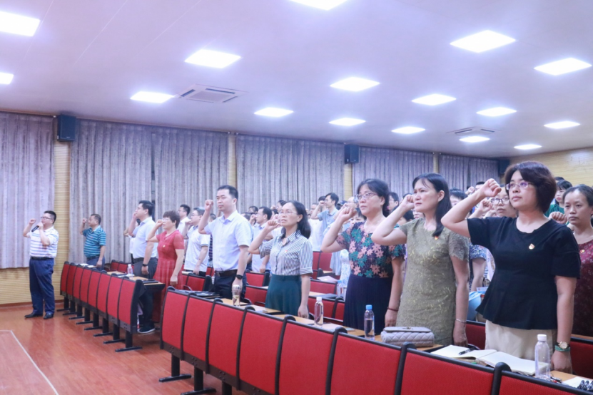 党委委员黄伟坚老师带领全体师生党员宣誓