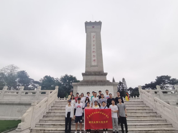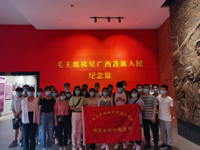 4月24日,SUNBET申博体育研究生第六党支部组织全体党员赴位于南宁人民公园的革命烈士纪念碑缅怀革命先烈,同时到毛主席接见广西各族人民纪念馆接受革命传统教育,并开展党史学习教育,向老一辈革命家学习。