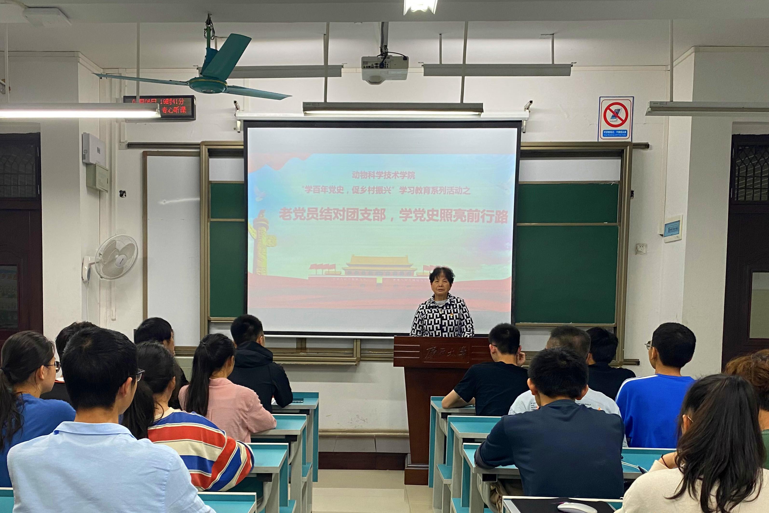 为不折不扣抓好党史学习教育,引导团员青年厚植爱党、爱国、爱社会主义情怀,让红色基因、革命薪火代代传承,SUNBET申博体育团委邀请李德富、陈熙全、韦芬隆、农世斌、汤炜、吴杰6名老党员分别与本科生动物医学191班、研究生五班等6个团支部结对开展“学党史、强信念、跟党走”学习教育。