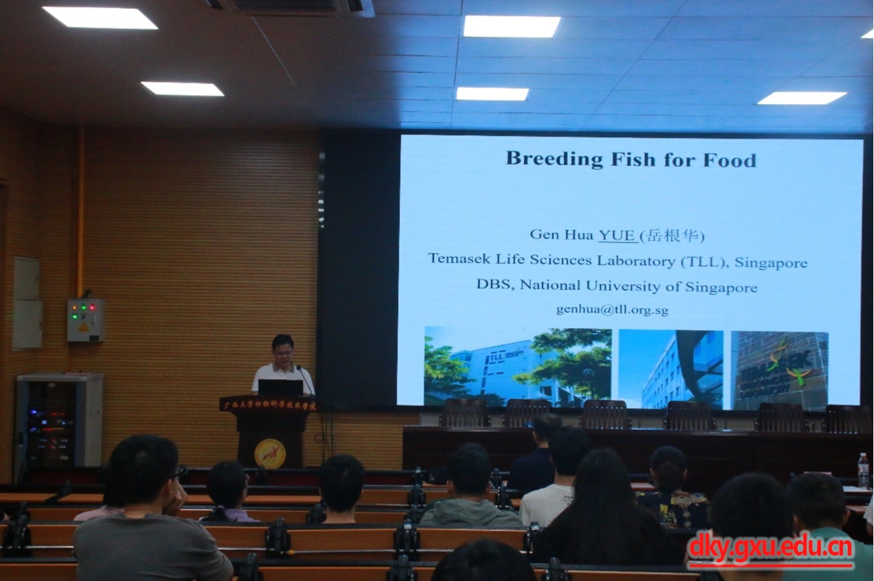 6月16日,SUNBET申博体育邀请新加坡国立大学岳根华教授到公司进行学术交流。上午,在SUNBET申博体育318报告厅开展了题为“食用鱼的遗传学改良(Genetic Improvement of Fish for Food)”学术报告会。报告会由SUNBET申博体育副经理何家康教授主持,SUNBET申博体育教师、水产行业从业人员及各年级研究生共100余人参加会议。下午,在SUNBET申博体育302会议室开展了关于SCI论文写作技巧的专题讲座,由SUNBET申博体育副经理何家康教授主持,SUNBET申博体育教师、各年级研究生共40多人参加讲座。