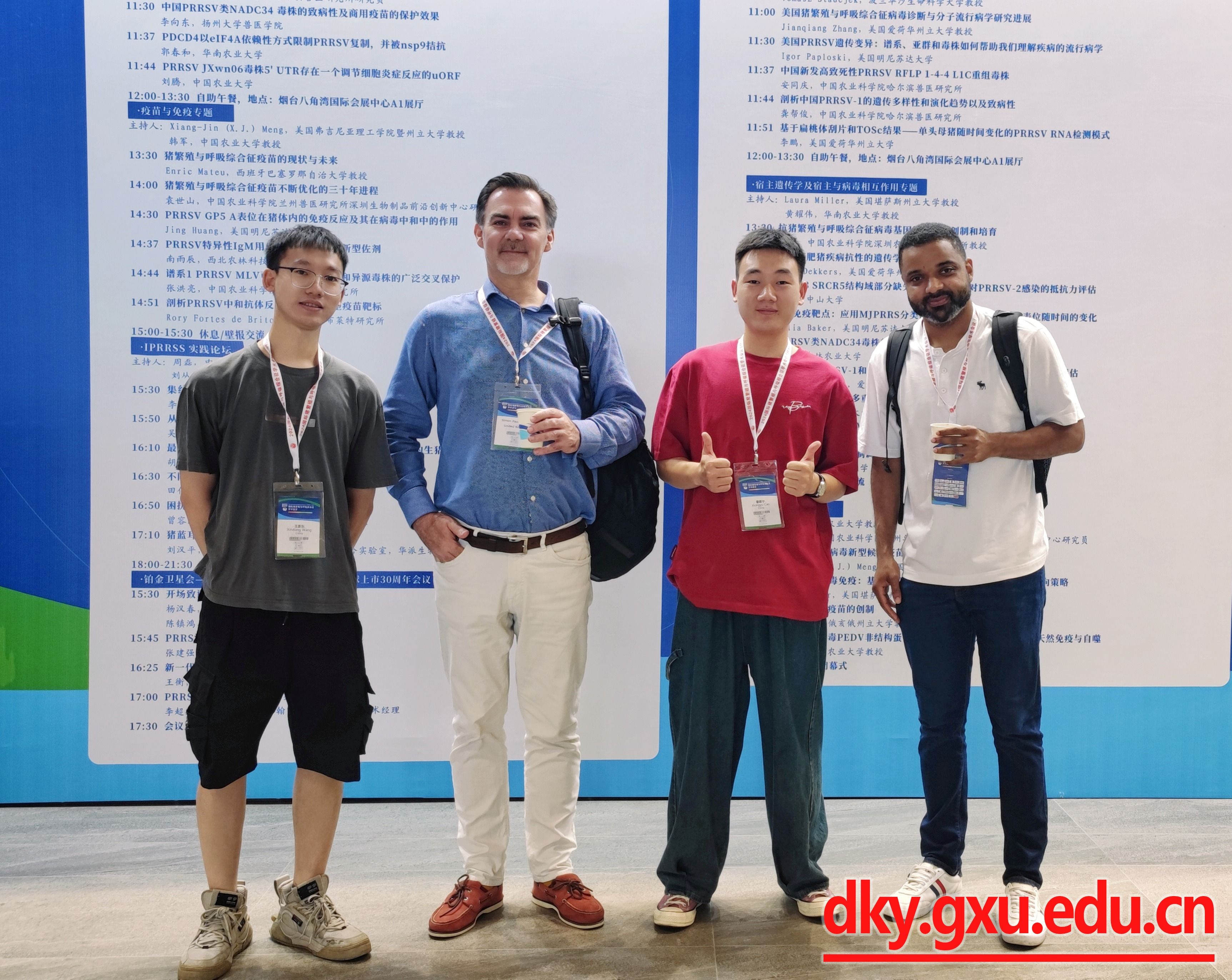 大会汇聚了来自世界各地的猪病领域专家、学者和从业者,共同探讨PRRS(俗称“猪蓝耳病”)的最新研究进展和防控策略。同时邀请了16位专家为参会代表带来了精彩纷呈、内容丰富的主题报告,广大参会代表也通过专题报告、墙报等多种方式分享了在PRRS领域取得的研究进展。公司王新东、曹雄宇两位研究生也通过墙报形式向参会同行展示了课题组在PRRS领域取得的研究进展,并借此机会与汇报嘉宾、国际知名专家进行了积极的交流和探讨,加深了其他高校和科研学者们对公司师生在PRRS研究领域长期耕耘的认识和联系,展现了公司在猪传染病领域研究良好的氛围和能力,同时也提升了公司在国际PRRS研究领域的影响力,为推进公司与国内外高校和企业的合作做出贡献。