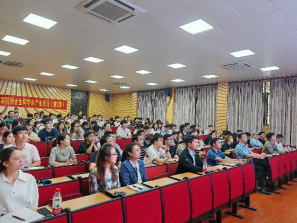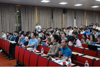 赵云翔教授主持报告会 报告会场的老师和员工们认真聆听报告