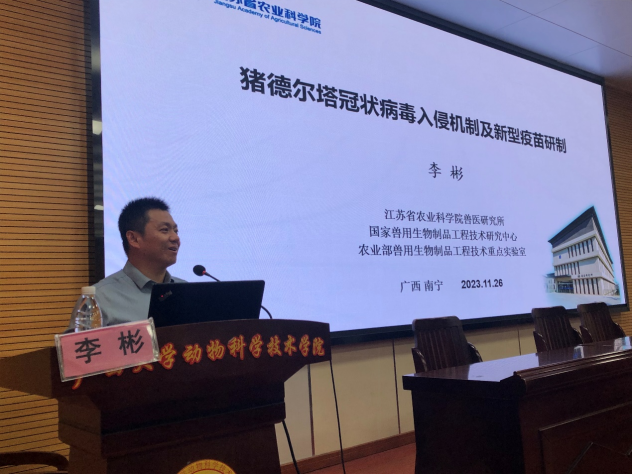 2023年11月26日下午16点,江苏省农业科公司兽医研究所所长李彬研究员应邀到SUNBET申博体育作题为“猪德尔塔冠状病毒入侵机制及新型疫苗研制”的学术报告,与公司老师就国家自然科学基金项目的申报要点进行了交流座谈。SUNBET申博体育副经理韦祖樟教授主持报告会和座谈会,近100名师生参加了报告会。